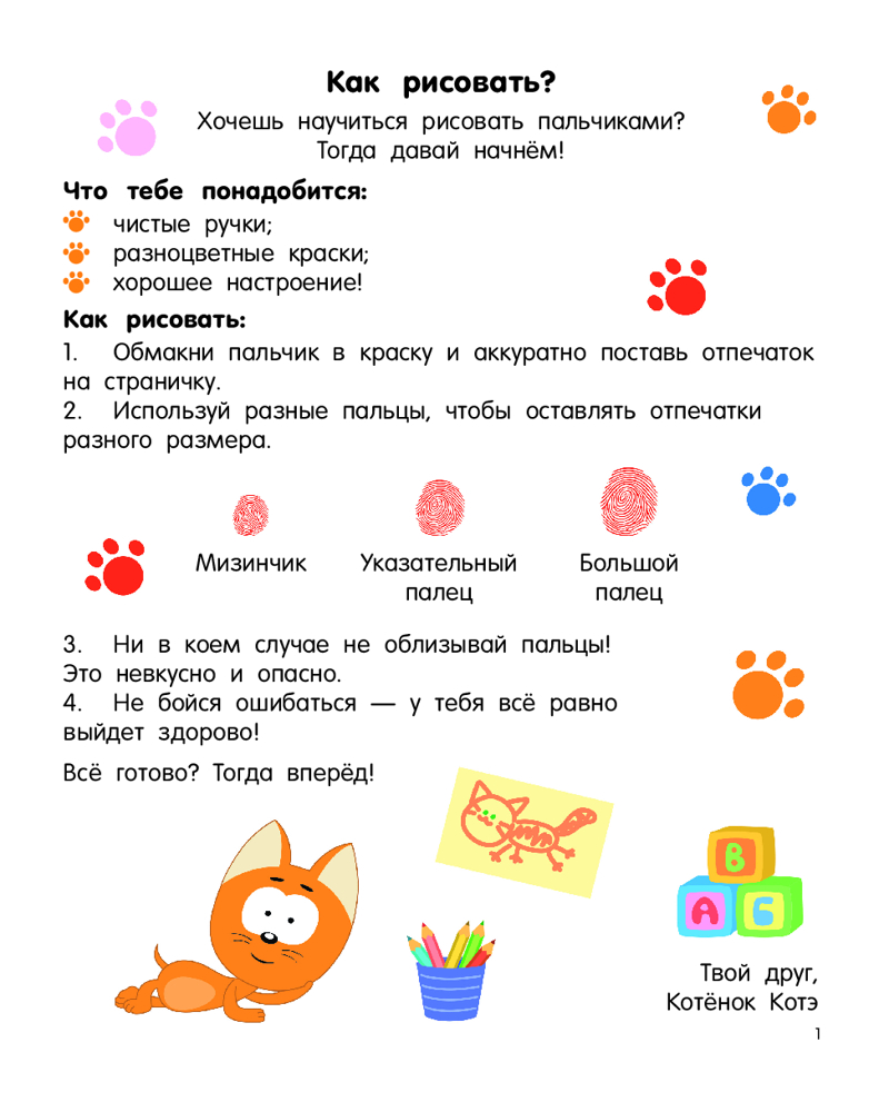 Котёнок Котэ. Рисуем пальчиками. 1-3 года
