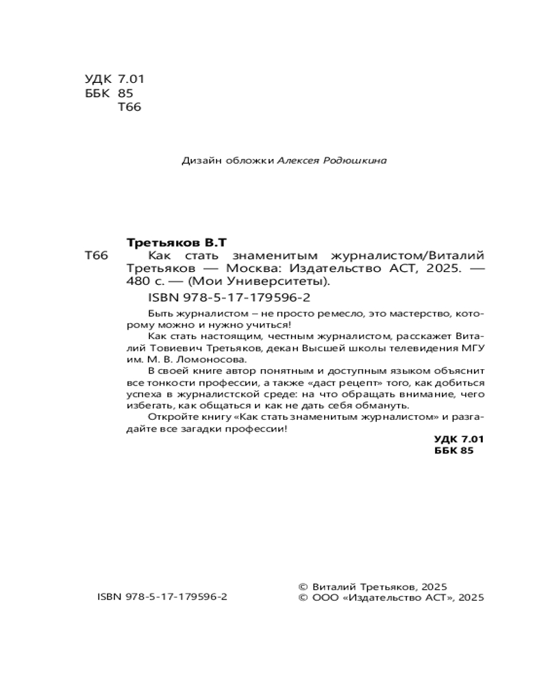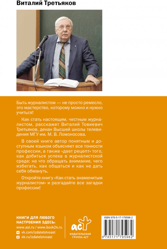 💳 Оплатить за товар можно при получении 🇰🇿 Есть бесплатная доставка по Казахстану от 1 дня 🎁 Копите бонусы с каждой покупки Серия: Мои Университеты Быть журналистом — не просто ремесло, это мастерство, которому можно и нужно учиться! Как стать настоящим, честным журналистом, расскажет Виталий Товиевич Третьяков, декан Высшей школы телевидения МГУ им. М. В. Ломоносова. В своей книге автор понятным и доступным языком объяснит все тонкости профессии, а также «даст рецепт» того, как добиться успеха в журналистской среде: на что обращать внимание, чего избегать, как общаться и как не дать себя обмануть. Откройте книгу «Как стать знаменитым журналистом» и разгадайте все загадки профессии! |