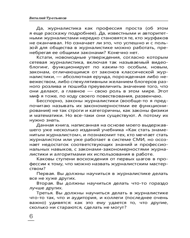 | Третьяков Виталий Товиевич родился в Москве. Окончил факультет журналистики МГУ в 1976 году. В 1976–1988 — работал в Агентстве печати «Новости» (АПН) на должностях от младшего до ответственного редактора. 1988—1990 — обозреватель социально-экономического отдела, политический обозреватель, заместитель главного редактора еженедельника "Московские новости«. За время работы в еженедельнике «Московские новости» Виталий Третьяков быстро прославился разоблачительными очерками о системе партийных... |