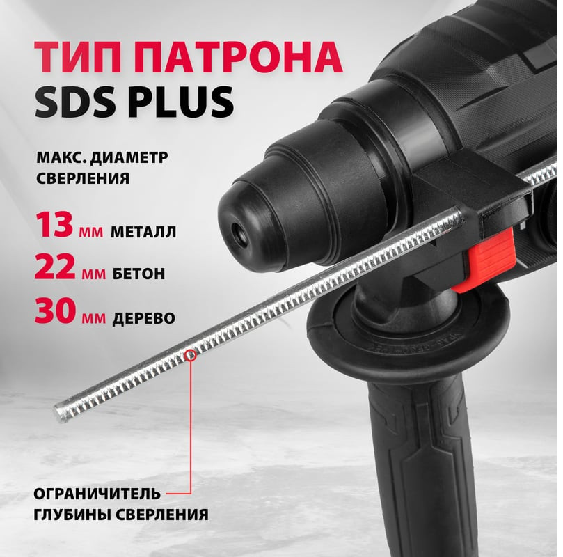 💳 Оплатить за товар можно при получении 🇰🇿 Есть бесплатная доставка по Казахстану от 1 дня 🎁 Копите бонусы с каждой покупки Электрический перфоратор MTX MRH-600-22 26682 мощностью 600 Вт, с патроном под хвостовик SDS-Plus, развивает энергию удара до 2,2 Дж и работает в одном из трех режимов: сверление, сверление с ударом, долбление + регулировка позиции долота. Для выбора нужного режима предусмотрен удобный переключатель. Инструмент используется для получения отверстий в бетоне, металле, древесине, кирпиче, а также для штробления стен. Максимальный диаметр отверстий при сверлении в бетоне составляет 22 мм, в металле — 13 мм, в древесине — 30 мм. Перфоратор может совершать до 4800 ударов в минуту, что обеспечивает высокую производительность и эффективность при работе с различными материалами. |