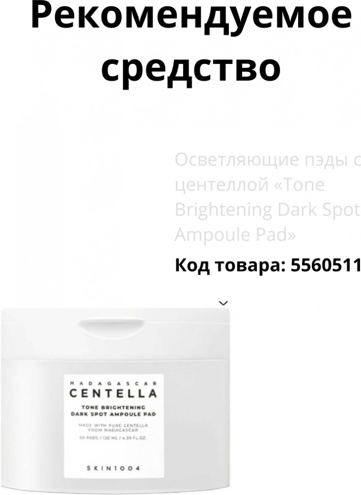 • Madewhite™ — комплекс из мадекассосида (производное центеллы азиатской) и пентиленгликоля; подавляет выработку фермента циклооксигеназы, регулирующего воспалительную реакцию, тем самым предотвращает воспаление и появление следов от акне;