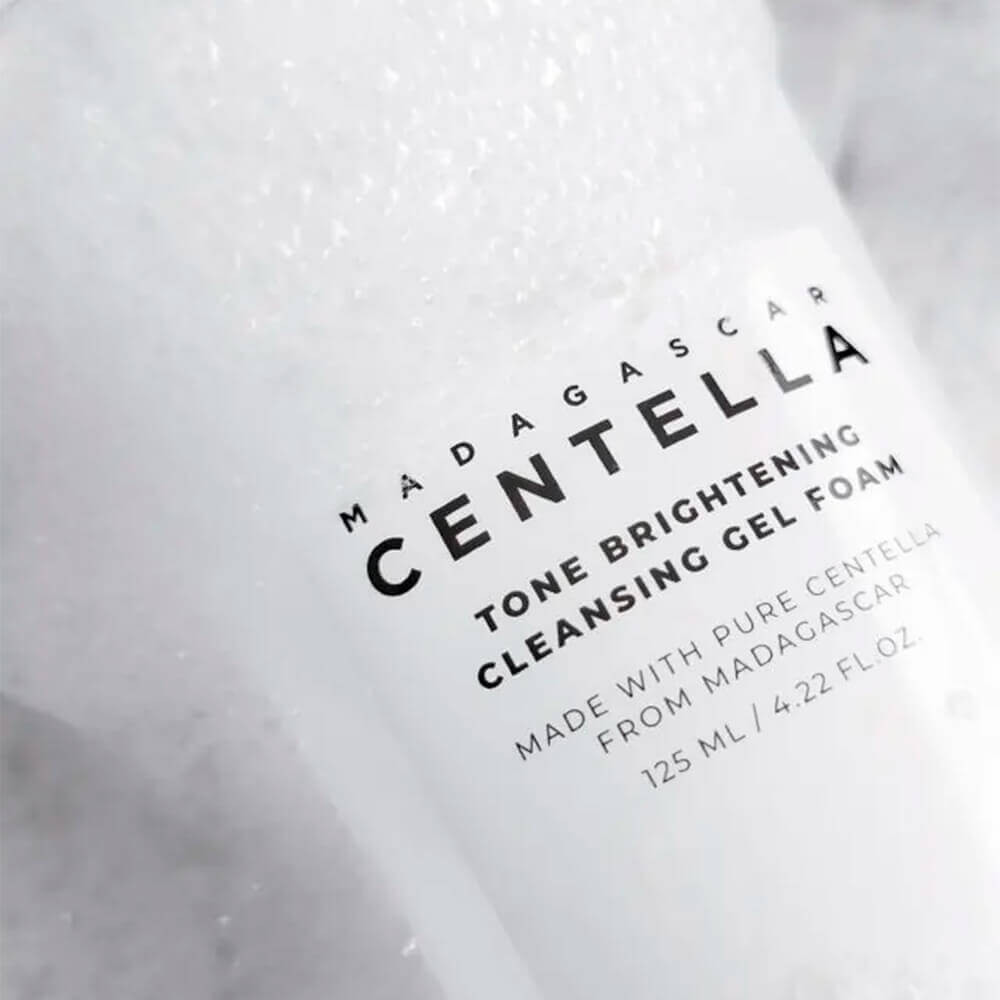 Гель-пенка Skin1004 Madagascar Centella Tone Brightening Cleansing Gel Foam бережно удаляет загрязнения, осветляет и выравнивает тон, не вызывает чувства стянутости и сухости после умывания. Очищает от омертвевших частиц и мягко отшелушивает. Продукт уменьшает видимость пигментных пятен и следов от акне, устраняет тусклость, очищает поры, удаляет пыль и остатки макияжа. Нейтральный pH средства нормализует кислотно-щелочной баланс эпидермиса, не нарушает защитный барьер.