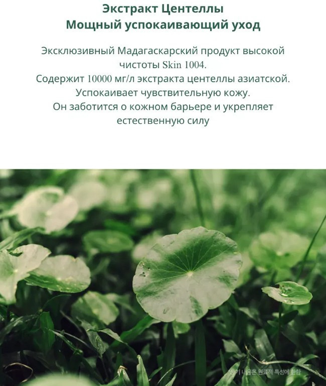Тониктің негізі болып табылатын азиялық центелла Мадагаскардың 17 ауданында, теңіз деңгейінен 700 м биіктікте, орташа жылдық температурасы 24~27°C болатын жерде өседі. Жоғары сапалы шикізат құралдың тиімділігін арттырады. Формуланың негізін құрайтын 90% центелла сығындысы теріні тыныштандырып, жұмсартады, тітіркену мен қызаруды басады, табиғи қорғаныс тосқауылын нығайтып, икемділік береді, сондай-ақ тамыр қабырғаларын қорғап, тамырлы «жұлдызшалардың» пайда болуына жол бермейді.