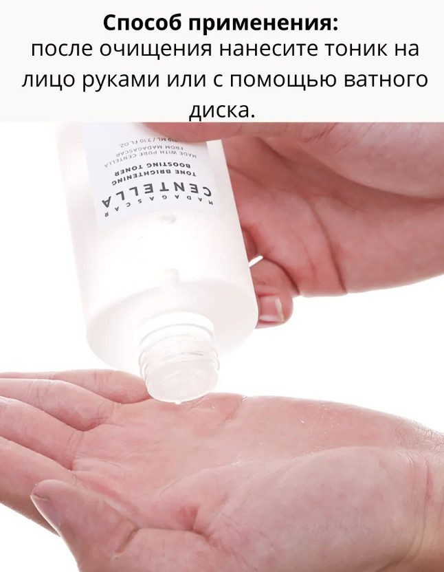 Способ применения: после очищения нанесите тоник на лицо руками или с помощью ватного диска.