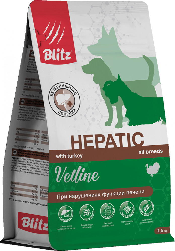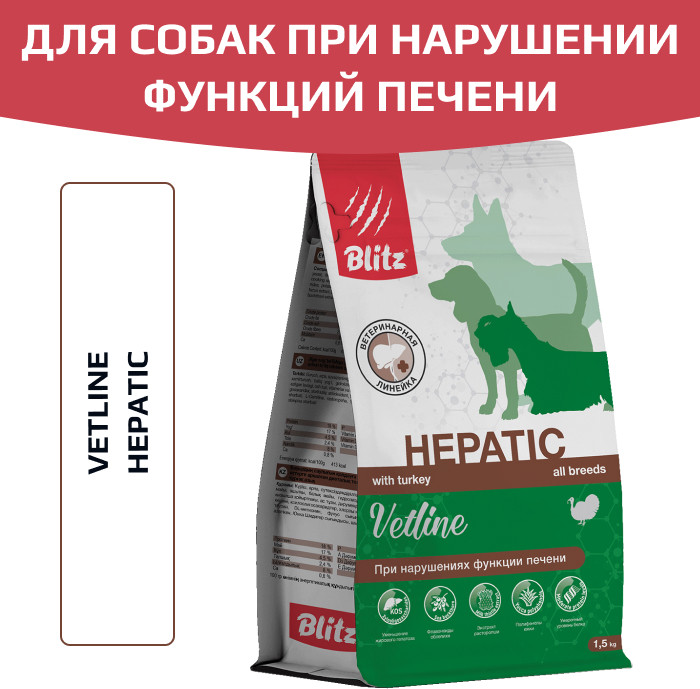 Blitz Корм для собак всех пород сухой при нарушениях функции печени с индейкой «Hepatic»