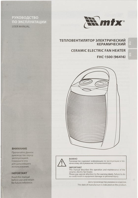💳 Оплатить за товар можно при получении 🇰🇿 Есть бесплатная доставка по Казахстану от 1 дня 🎁 Копите бонусы с каждой покупки Тепловентилятор MTX FHC-1500 96416 работает в одном из трех режимов работы: вентиляция без нагрева, нагрев на мощности 750 Вт и 1500 Вт. Используется для обогрева комнат площадью до 20 кв. м на даче или в квартире. Тепловентилятор поддерживает необходимую температуру в холодную погоду и обеспечивает вентиляцию помещения в жару. Благодаря керамическому нагревательному элементу устройство не сжигает пыль, не выделяет вредных веществ и не сушит воздух, а также отличается повышенной пожаробезопасностью. |