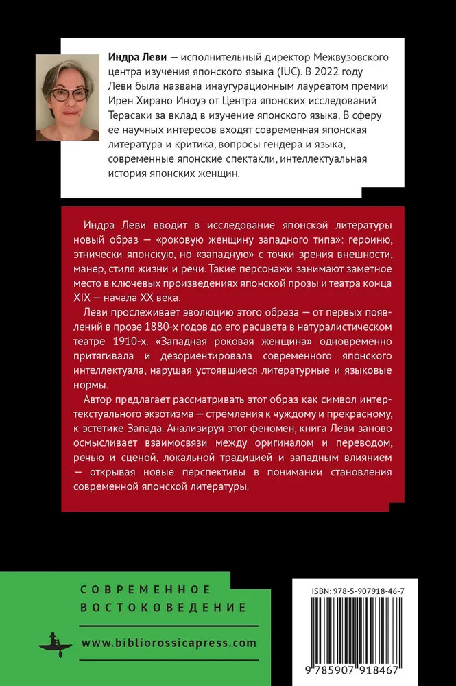 Сирены западного побережья. «Роковая женщина западного типа» в японской литературеВ данный момент этот товар отсутствует в продаже. Возможно, у нас найдется аналогичный или похожий товар здесь. Серия: Современное востоковедение Индра Леви вводит в исследование японской литературы новый образ — «роковую женщину западного типа»: героиню, этнически японскую, но «западную» с точки зрения внешности, манер, стиля жизни и речи. Такие персонажи занимают заметное место в ключевых произведениях японской прозы и театра конца XIX — начала XX века. Леви прослеживает эволюцию этого образа — от первых появлений в прозе 1880-х годов до его расцвета в натуралистическом театре 1910-х. «Западная роковая женщина» одновременно притягивала и дезориентировала современного японского интеллектуала, нарушая устоявшиеся литературные и языковые нормы. Автор предлагает рассматривать этот образ как символ интертекстуального экзотизма — стремления к чуждому и прекрасному, к эстетике Запада. Анализируя этот феномен, книга Леви заново осмысливает взаимосвязи между оригиналом и переводом, речью и сценой, локальной традицией и западным влиянием — открывая новые перспективы в понимании становления современной японской литературы. |