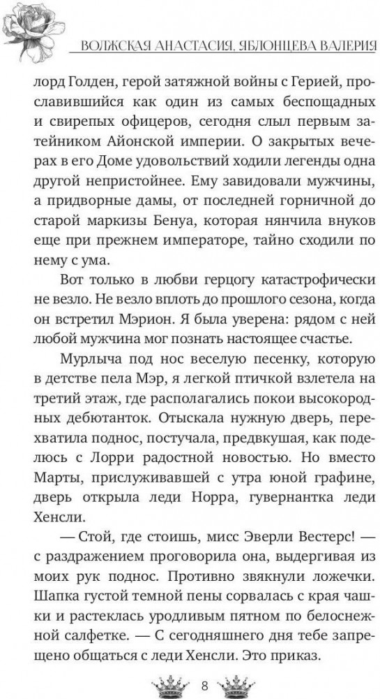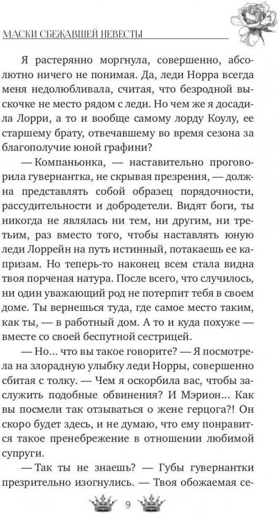 💳 Оплатить за товар можно при получении 🇰🇿 Есть бесплатная доставка по Казахстану 🎁 Копите бонусы с каждой покупки Когда постоянно носишь маски, так ли уж важно, что под ними? Первая выпускница пансиона Вест-холл, лучшая фрейлина императрицы, одаренная магичка, любящая сестра и преданная супруга герцога Голдена — Мэрион Вестерс носила множество масок. Но я наивно полагала, что от меня у сестры секретов нет. До тех пор, пока Мэр не сбежала во время медового месяца, влюбившись в конюха его сиятельства. И если графу Коулу Хенсли, начальнику императорской службы безопасности, это не кажется подозрительным, мы с моей подругой и подопечной Лоррейн Хенсли сами раскроем все тайны — и дворцовые, и сердечные. |