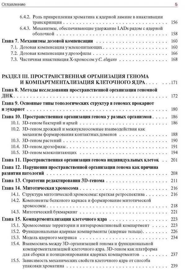 • дается представление о топологически-ассоциированных доменах хроматина, активном и неактивном хроматиновых компартментах, роли межнуклеосомной ассоциации и осуществляемой когезином экструзии хроматиновых петель в трехмерной организации генома;