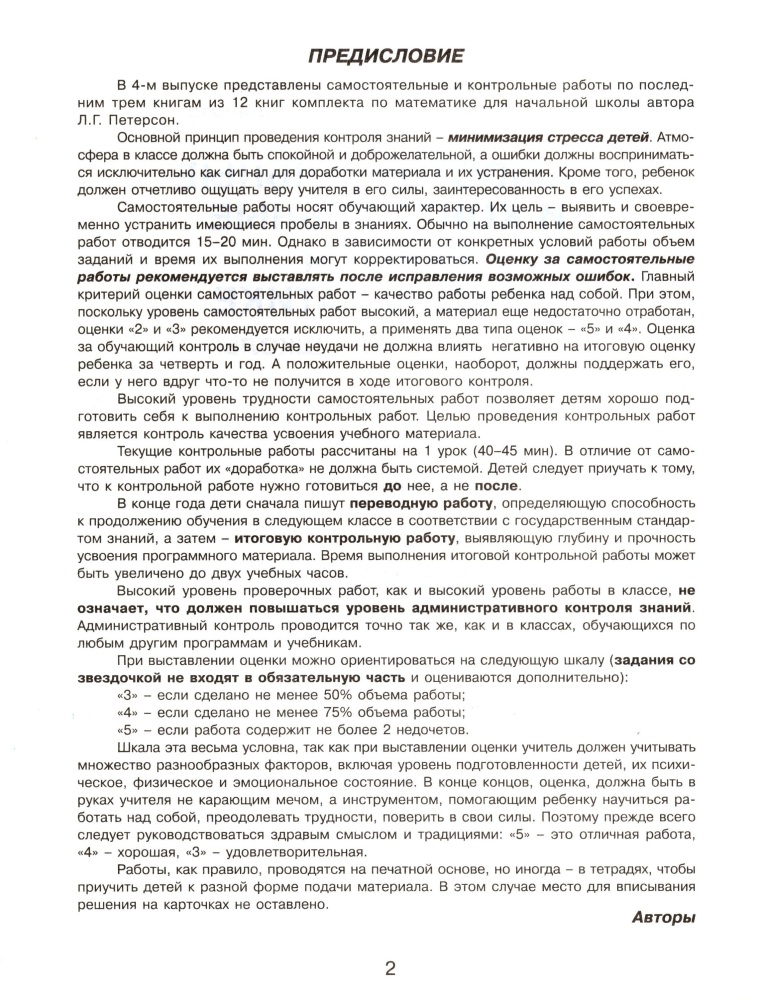 Замечательная тетрадь, в которой по темам соответственно учебной тетради Л.Г.Петерсон представлены самостоятельные и контрольные работы. По ней можно легко определить уровень знаний вашего ребёнка.