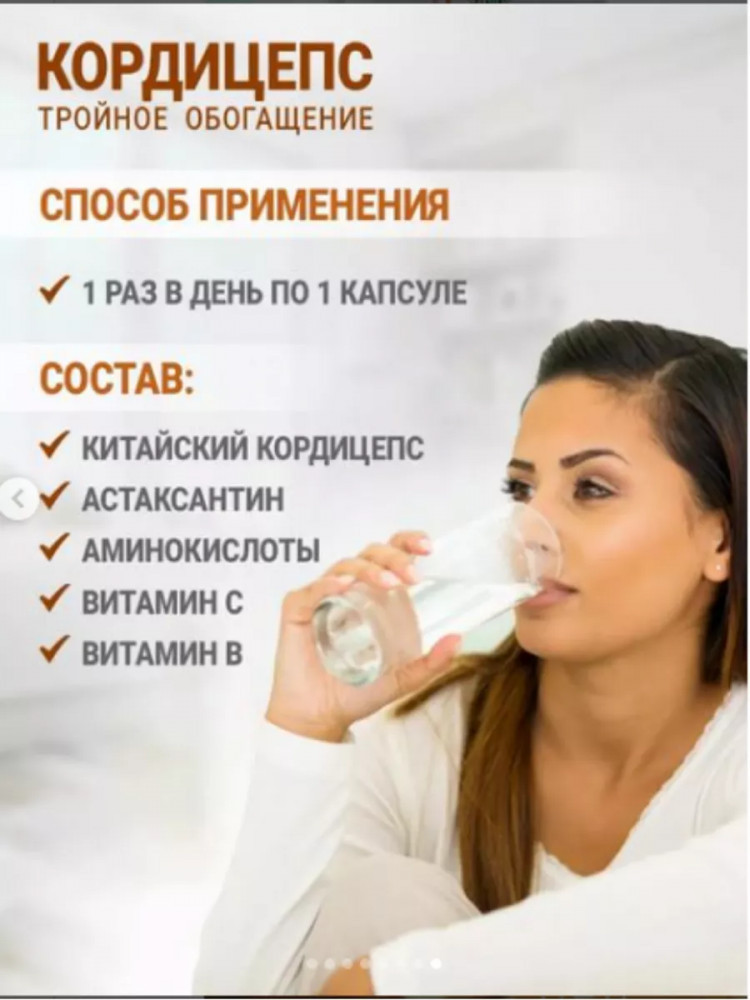 Кордицепс, являясь сильным природным энергетиком, также обладает противоопухолевыми и антиметастатическими свойствами. В настоящее время организму часто не хватает комплекса витаминов, таких как витамин D3, магний; омега-3, цинк, калий; биотин, железо, кальций D3 и др.