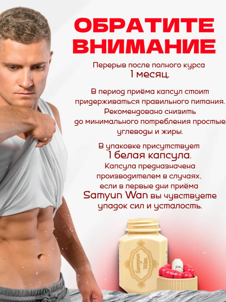 В данный момент этот товар отсутствует в продаже. Возможно, у нас найдется аналогичный или похожий товар здесь. «Samyun Wan» — это капсулы на травяной основе, предназначенные для набора веса. Препарат завоевал доверие многих потребителей. Частыми клиентами являются девушки с проблемой набрать вес, а так же профессиональные спортсмены в погоне за массой.