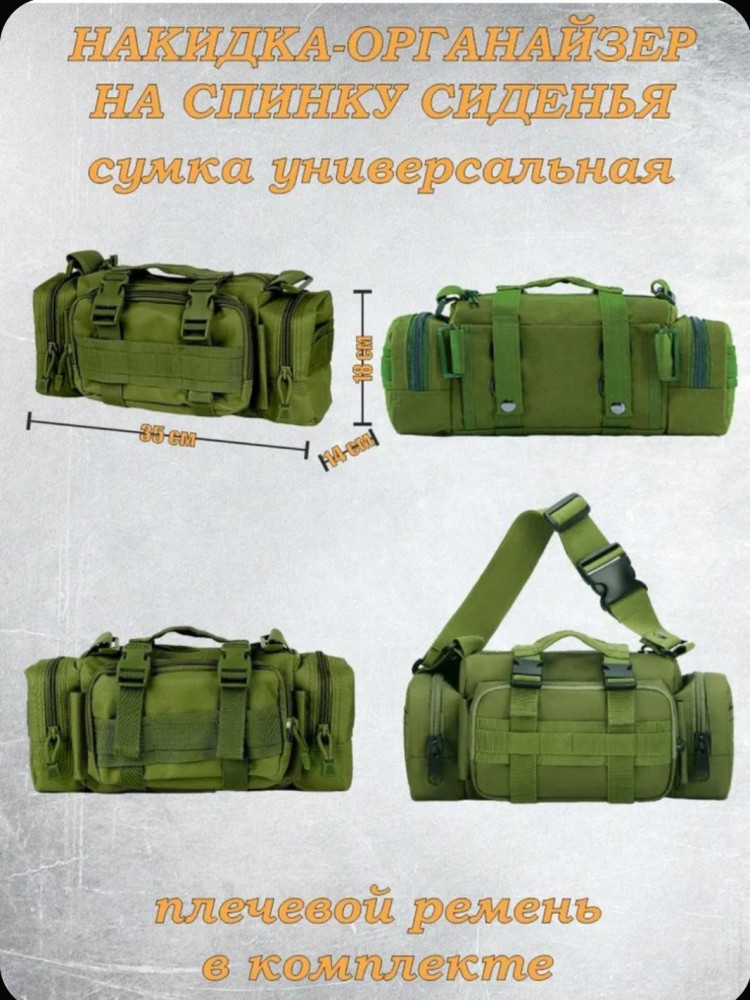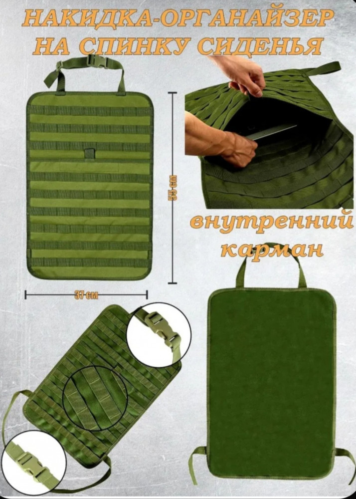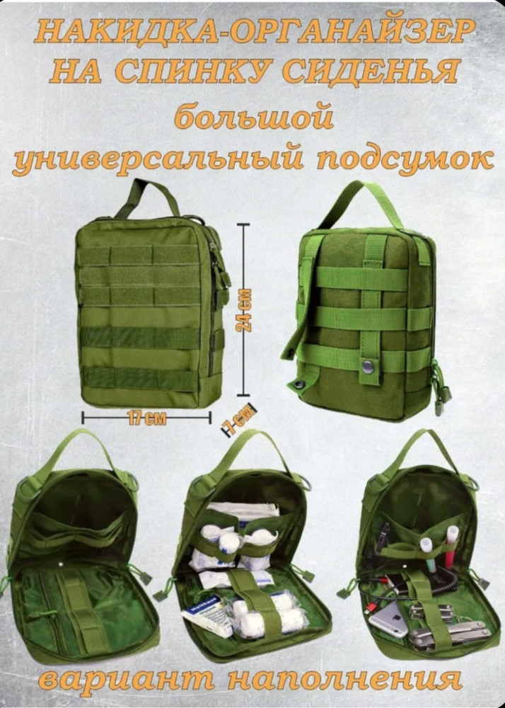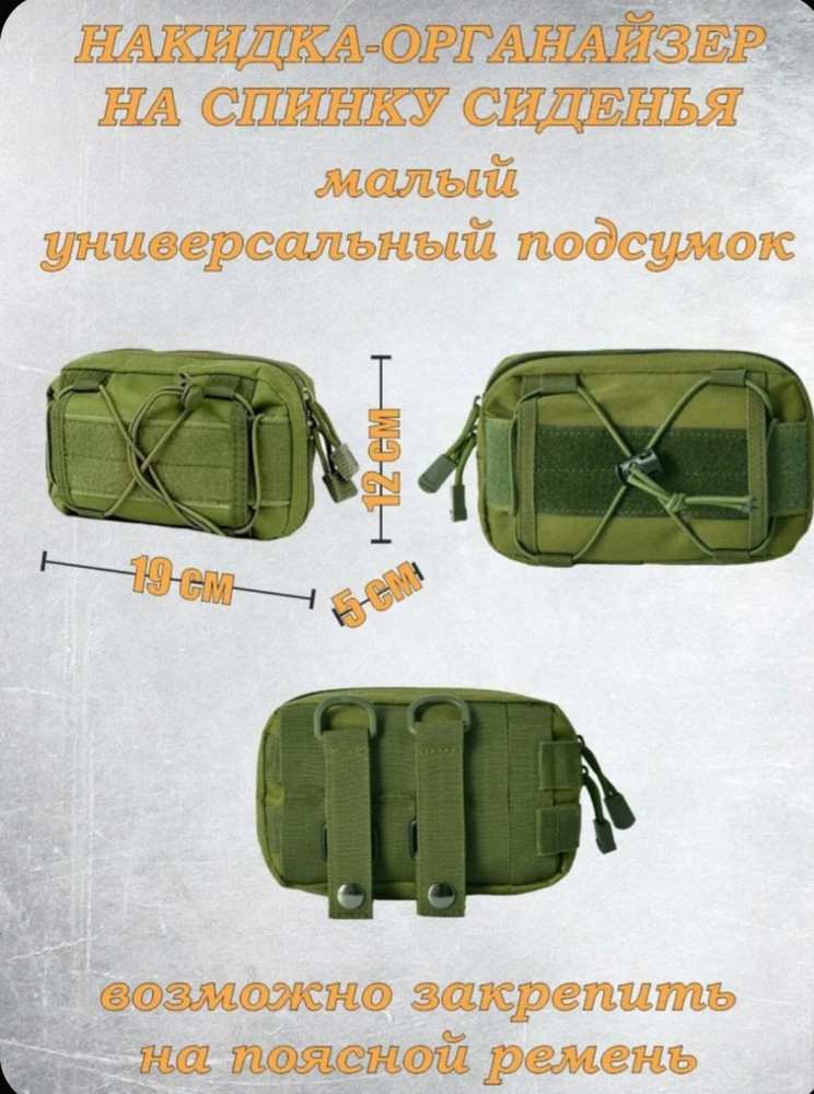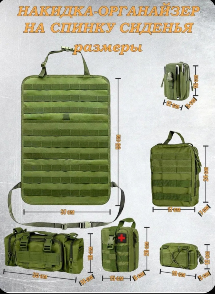 Организатор с системой Molle оснащен несколькими удобными отсеками разного размера: отделение для медицинской аптечки, сумка для смартфона, секция для крупногабаритных предметов и поясная сумка с множеством функций. Подходящие размеры (21×14,5 дюймов) позволяют устанавливать этот органайзер практически на любые автомобили, джипы, грузовые машины и пикапы. Вы сможете удобно расположить мобильные телефоны, тактические ручки, ключи зажигания, навигационные приборы, цифровые камеры, медицинское оснащение и любую нужную технику для комфортного путешествия и занятий активным отдыхом.