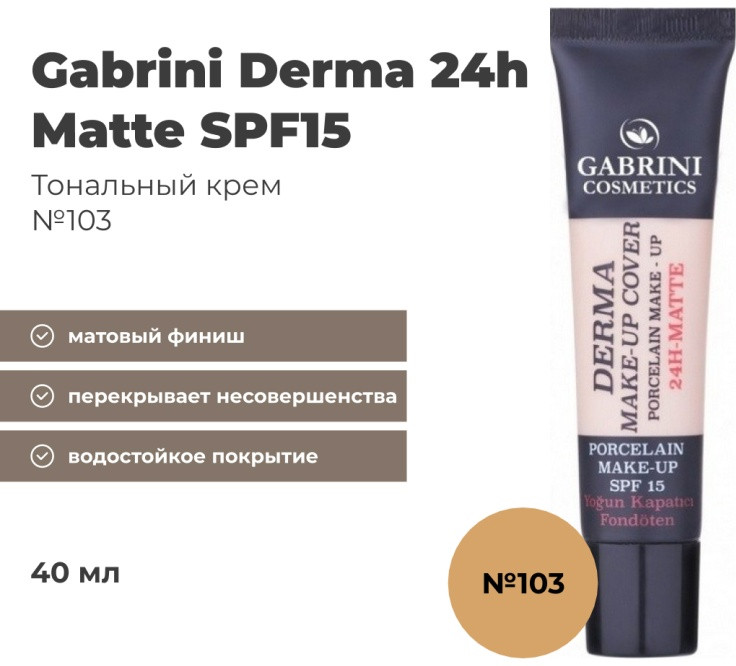 Тональный крем для лица «Derma Make-Up Cover 24h Matte», оттенок 103