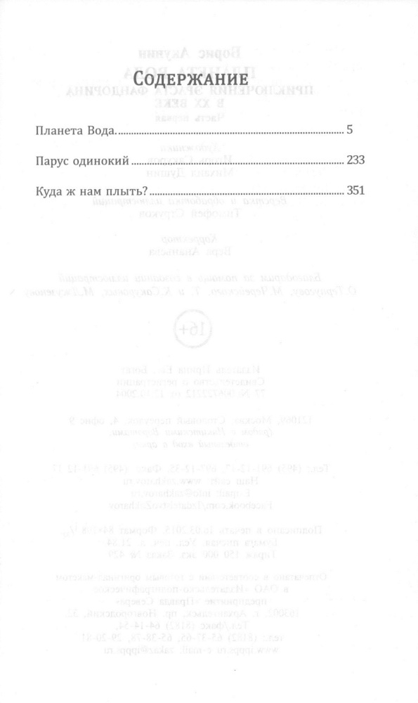 Планета Вода. Приключения Эраста Фандорина в ХХ векеВ данный момент этот товар отсутствует в продаже. Возможно, у нас найдется аналогичный или похожий товар здесь. Серия: Новый детективъ Новая книга Бориса Акунина о приключениях Эраста Фандорина. Книга включает в себя три повести: «Планета Вода», «Парус одинокий» и «Куда ж нам плыть?». По авторской классификации это «технократический детектив», «ностальгический детектив» и «идиотический детектив». Действие происходит в 1902–1912 годах. |