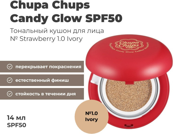 Кушон для лица тональный SPF50 «Candy Glow Strawberry», оттенок 1.0 Ivory