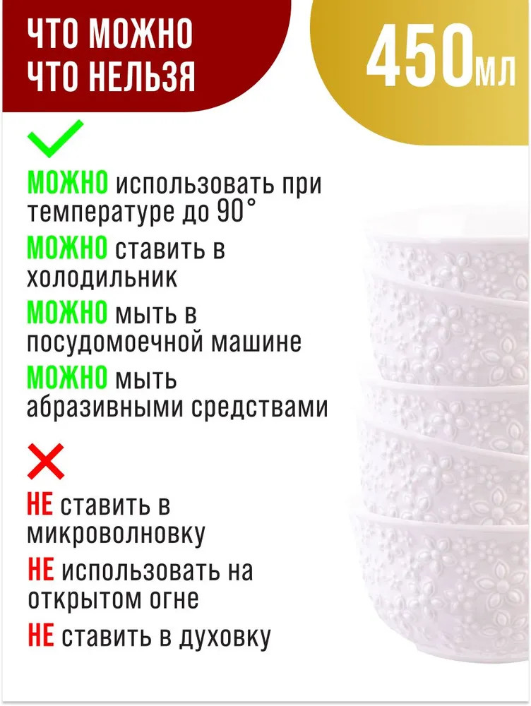 В наборе: 6 салатников по 450 мл.