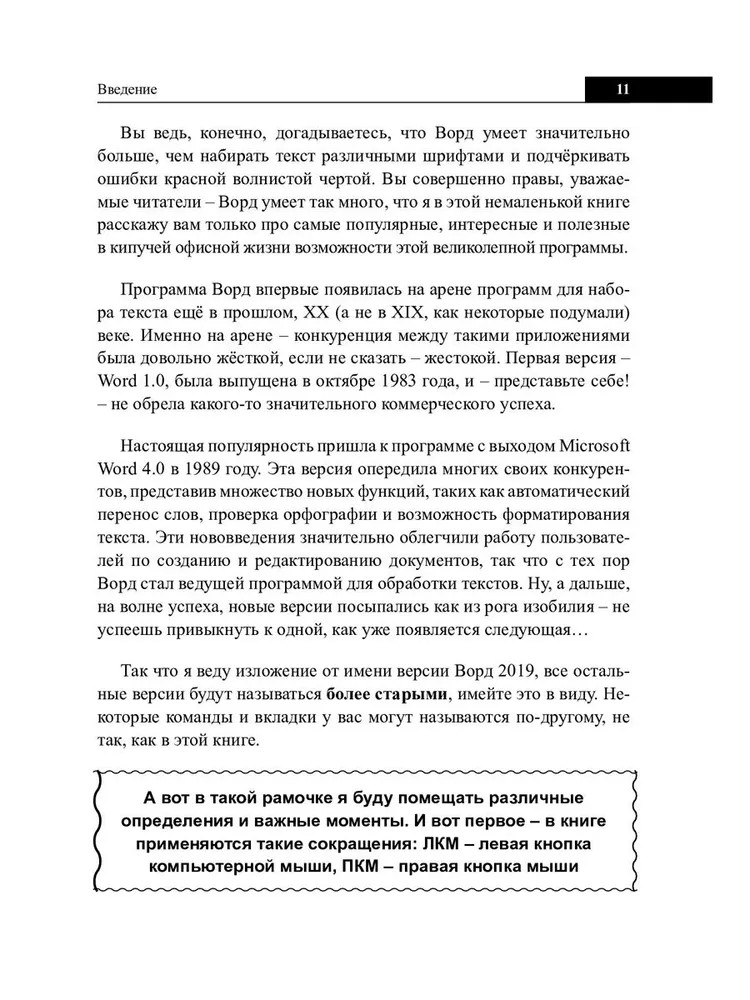 💳 Оплатить за товар можно при получении 🇰🇿 Есть бесплатная доставка по Казахстану от 1 дня 🎁 Копите бонусы с каждой покупки В этом справочнике-практикуме рассмотрены все основные возможности Word: от самых простых (создание документа по ГОСТу, форматирование и разметка, сноски, использование подложки и изображений и т.п.), до расширенных и очень полезных возможностей (работа с таблицами, диаграммами и схемами, использование стилей, закладок, буквицы, поиск и замена слов, создание оглавления, вставка и обработка трёхмерных моделей, SmartArt и работа с ним и т.п.). Большое количество детально разобранных пошаговых примеров и структура справочника позволяют быстро и легко находить всю необходимую информацию и получать примеры использования различных возможностей Word. Большинство пользователей Word не используют весь широчайший арсенал этой замечательной программы или не знают, что очень многое при создании текста можно сделать легко, быстро и просто. |