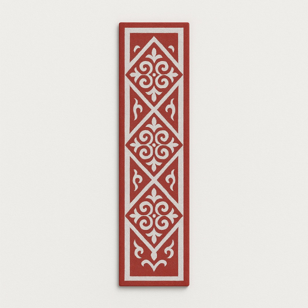 Закладка «Корпе»В данный момент этот товар отсутствует в продаже. Возможно, у нас найдется аналогичный или похожий товар здесь. Красная бумажная закладка с традиционным узором корпе, прямоугольная, размер 40×153 мм. |
