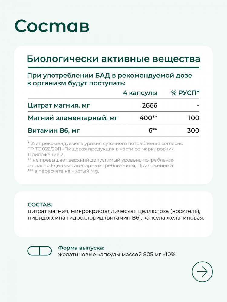 • улучшает сон (магний B6 для сна) — помогает расслаблению и нормализации биологических ритмов, может облегчать засыпание и улучшать качество сна;