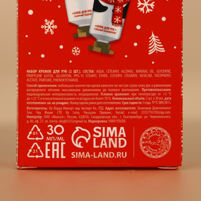 Ural lab Подарочный набор новогодний «Мишка»В данный момент этот товар отсутствует в продаже. Возможно, у нас найдется аналогичный или похожий товар здесь. Подарочный набор URAL LAB «Мишка» — идеальный подарок на Новый Год, который поразит своей оригинальностью и стильным оформлением. В состав набора входят два крема для рук объемом 30 мл, способствующие глубокому увлажнению и питанию кожи. Формула кремов обогащена полезными экстрактами, что обеспечивает защиту и восстановление кожи рук в холодное время года. Дизайн упаковки с изображением милого мишки добавляет чувству теплоты и заботы, делая этот набор не только практичным, но и приятным на вид. Он станет чудесным дополнением к новогоднему праздничному настроению и создаст атмосферу уюта. Отличный выбор для друзей, близких и коллег, этот набор подчеркнет ваше внимание к их комфорту и благополучию. Подарите себе и своим близким уникальный момент заботы с кремами для рук от URAL LAB! |