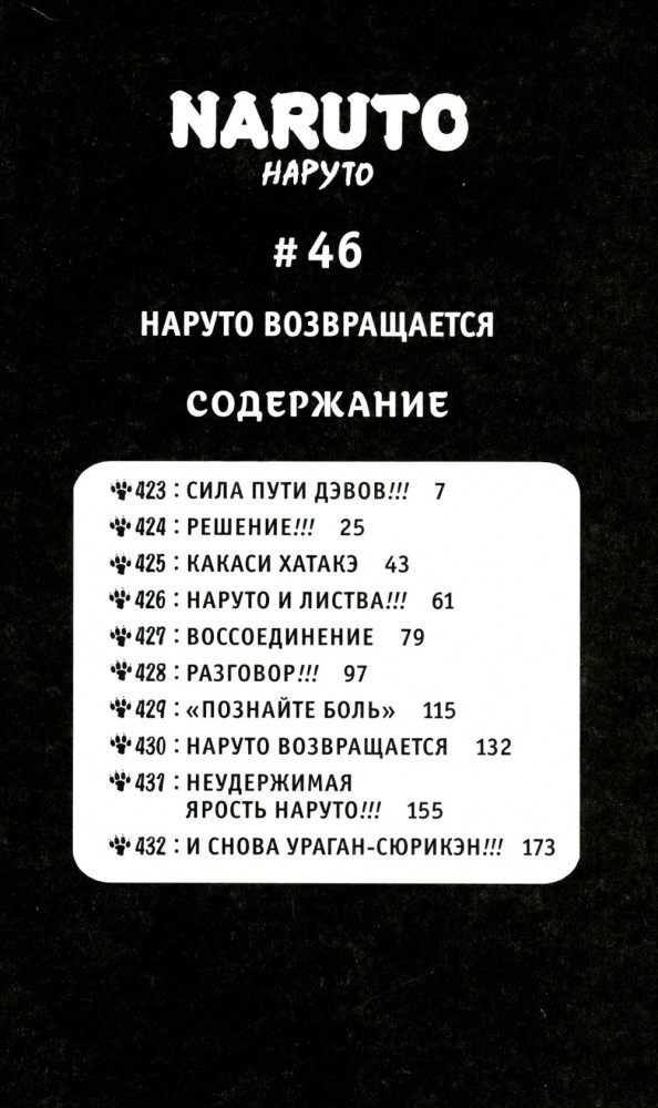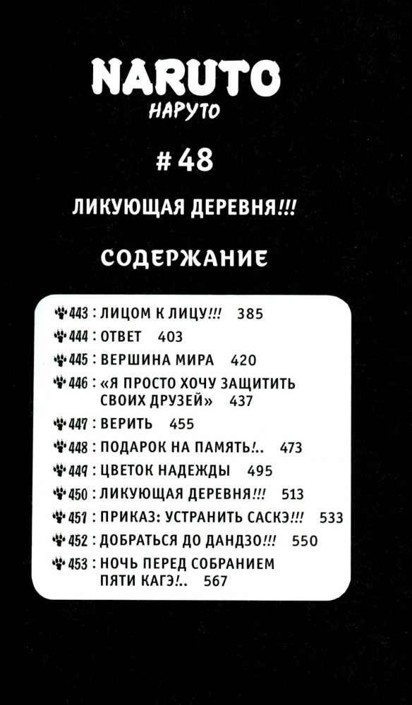 Саскэ, Сакура и Наруто наконец встретились лицом к лицу. Когда-то лучшие друзья, талантливые синоби из команды номер семь, — молодые люди уже давно не могут найти общий язык. Саскэ пошел по темному пути и хочет уничтожить всех жителей Листвы, включая бывших товарищей. И всё же Наруто не намерен отказываться от друга, пусть даже исходом схватки один на один может стать смерть обоих. Молодой ниндзя решает в очередной раз поговорить с Саскэ, но Мадара прерывает их беседу. Саскэ возвращается в логово «Рассвета», а Наруто отправляется на остров, где когда-то тренировался Киллер Би, чтобы познать своих внутренних демонов... |