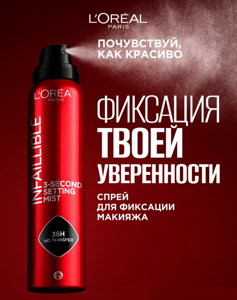 Серия: Infaillible Фиксирующий спрей, который делает ваш макияж стойким за 3 секунды. Фиксирует и сохраняет стойкость макияжа до 36 часов. Не отпечатывется, не липнет и не ощущается на коже благодаря микро-распылению. Макияж, который будет стойким, свежим и безупречным не мечта, а реальность! Фиксатор для макияжа станет незаменимым помощником в создании идеального образа. Фиксатор для макияжа спрей не только фиксирует макияж, но и придает ему матирующий эффект. Волшебство начинается в момент нанесения фиксатора для макияжа. Секрет этого чуда заключается в его уникальной формуле, которая создает невидимую и легкую пленку на вашем лице. |