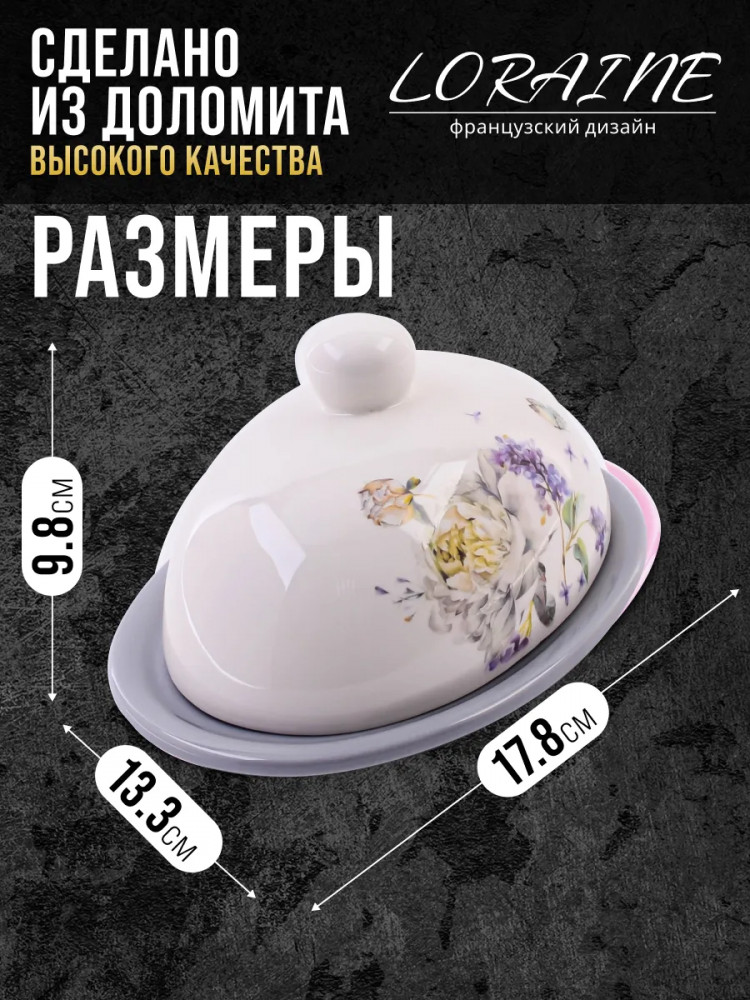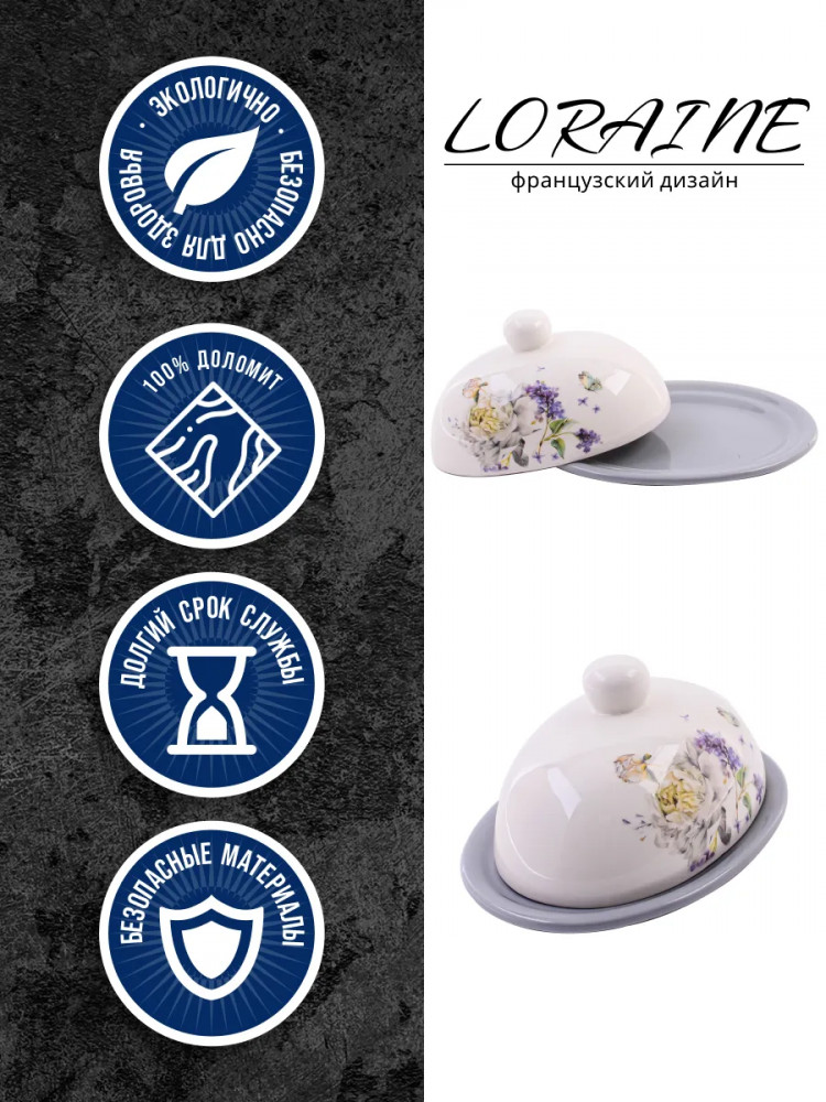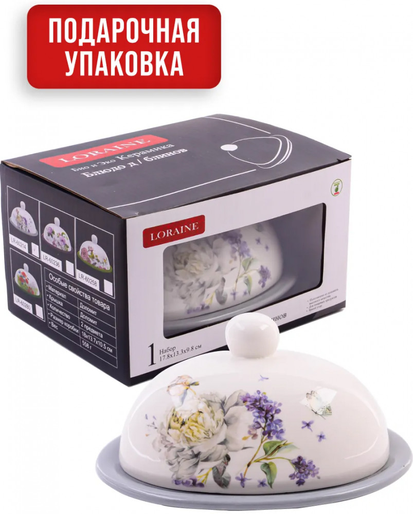Loraine Масленка с крышкой «Букет фантазий»В данный момент этот товар отсутствует в продаже. Возможно, у нас найдется аналогичный или похожий товар здесь. Серия: Розовый сад Масленка с крышкой Loraine предназначена для хранения сливочного масла в холодильнике и подойдет для красивой сервировки стола. Масленка для сливочного масла изготовлена из БИО и ЭКО доломитовой керамики высокого качества и украшена красивым цветочным рисунком, который придаст настроения вашему чаепитию. Набор состоит из блюда и крышки. Емкость вместительная, элегантной формы с удобной ручкой на крышке. Крышка надежно закрывает блюдо, защищая масло от попадания влаги, посторонних запахов и заветривания. Под ней масла долго не испортится и сохранит свой первозданный вид и аромат. |