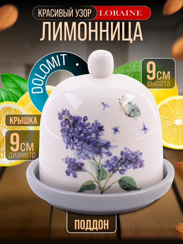 💳 Оплатить за товар можно при получении 🇰🇿 Есть бесплатная доставка по Казахстану от 1 дня 🎁 Копите бонусы с каждой покупки Серия: Букет фантазий лимонница с крышкой Loraine — это прекрасный аксессуар для любителей свежих цитрусовых. Красивая лимонница изготовлена из БИО и ЭКО доломитовой керамики высокого качества и украшена красивым цветочным рисунком с бабочками. Керамика один из лучших материалов для использования в быту, долговечна и отлично впишется в любой интерьер кухни. Набор состоит из двух предметов — блюдце и крышка. Для удобства использования свеху на крышке есть ручка. Удобный контейнер для хранения лимонов надежно защищает содержимое от посторонних запахов и заветривания. Оригинальный дизайн и качество исполнения сделают тарелку для лимона настоящим украшением стола и подчеркнет прекрасный вкус хозяйки. Благодаря своей форме, она подходит для хранения не только лимона, но и других цитрусовых фруктов. Керамическая посуда подходит для использования в микроволновой печи, холодильнике и посудомоечной машине. Изделие упаковано в индивидуальную коробку. Такая лимонница керамическая прекрасно подойдет для вашей кухни и будет отличным подарком для друзей и близких. |