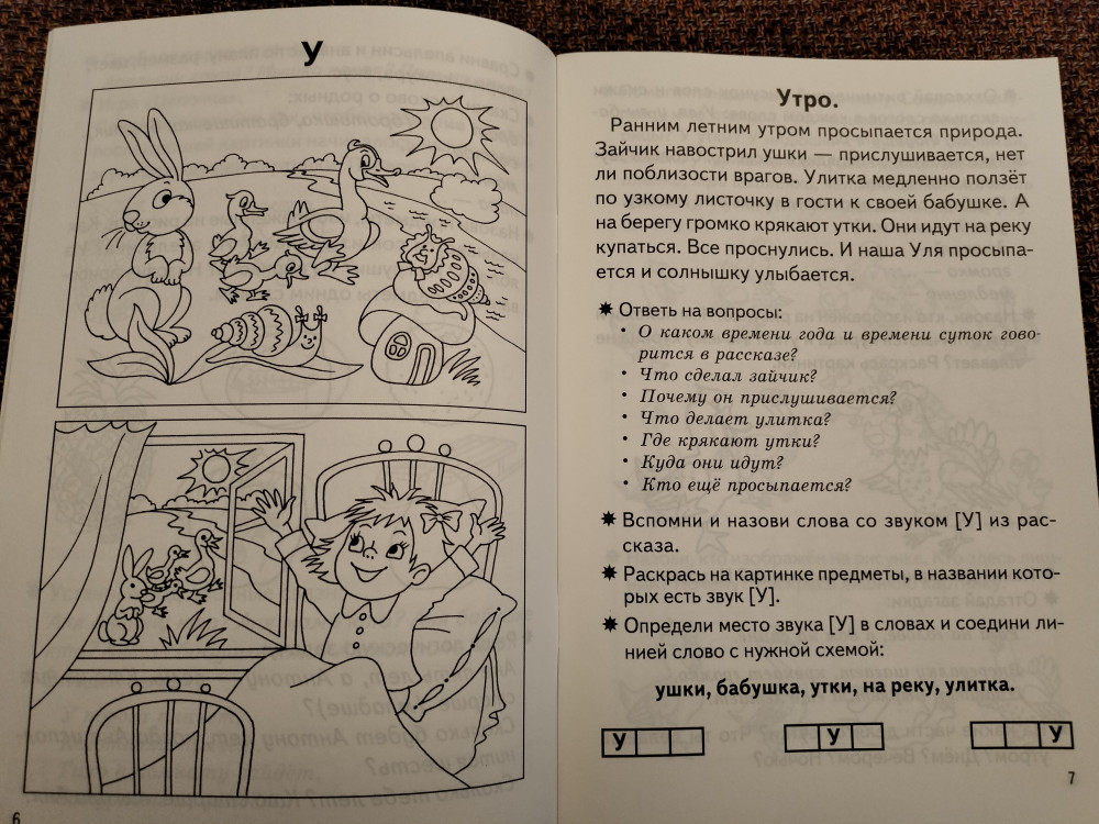Рабочая тетрадь очень понравилась! В ней дается тема "определенный звук", небольшой рассказ. Ребенок читает и отвечает на вопросы, выделяет слова с данным звуком, раскрашивает рисунки и делает несколько заданий.