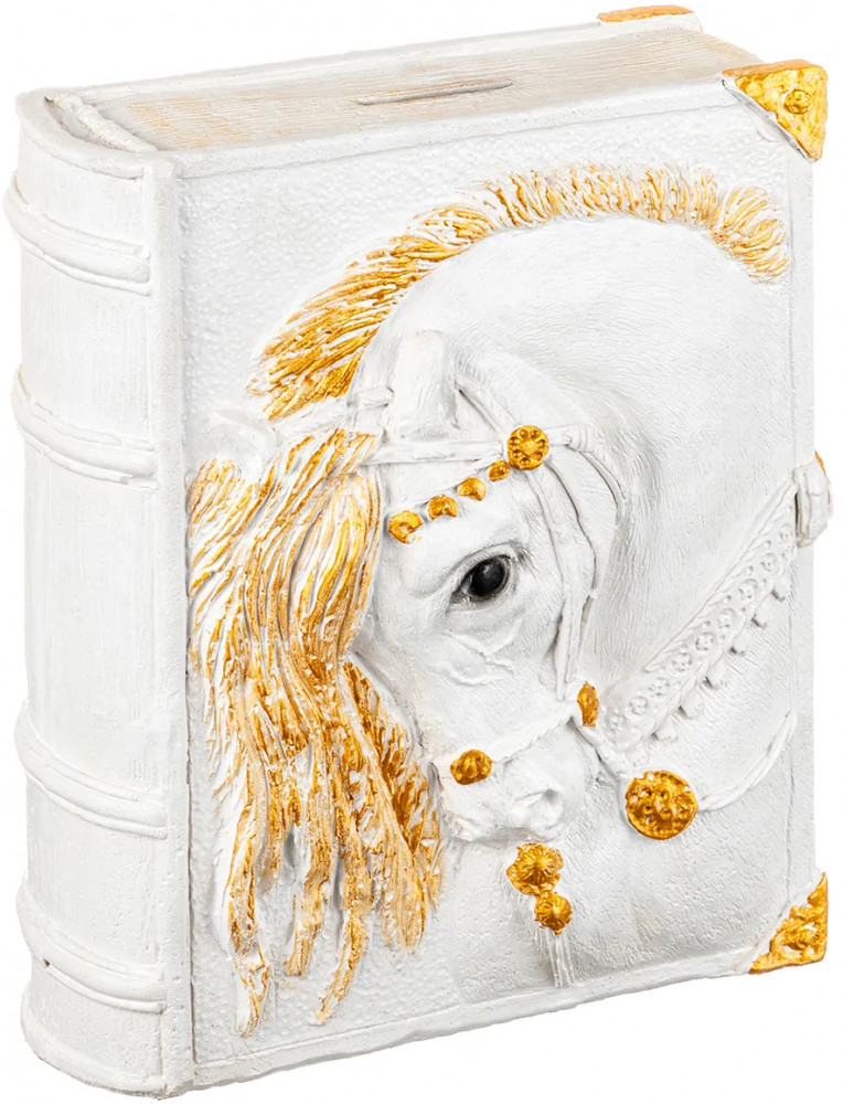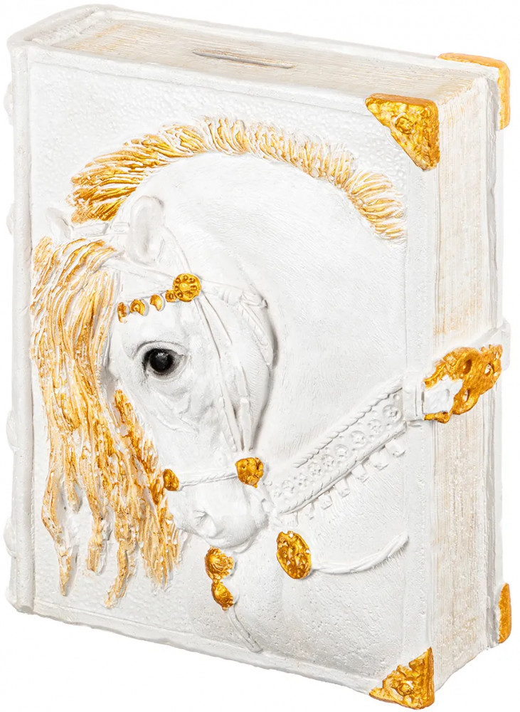 Копилка «Лошадь» от Elan Gallery поможет вам организовать хранение ваших финансов. Размер изделия — 16×7×21 см. Фигурка имеет необычную форму белой книжки. На одной стороне обложки красуется рельефный силуэт коня в изысканной сбруе с золотистыми элементами. На другой — золотистая подкова. Выполнена из гипса. Это классическая копилка, которую нужно разбить, чтобы достать сбережения. Можно использовать как детскую — она поможет ребёнку развить терпение и бережное отношение к средствам. Позволит хранить деньги в разных форматах — как в виде монет, так и бумажными купюрами. |