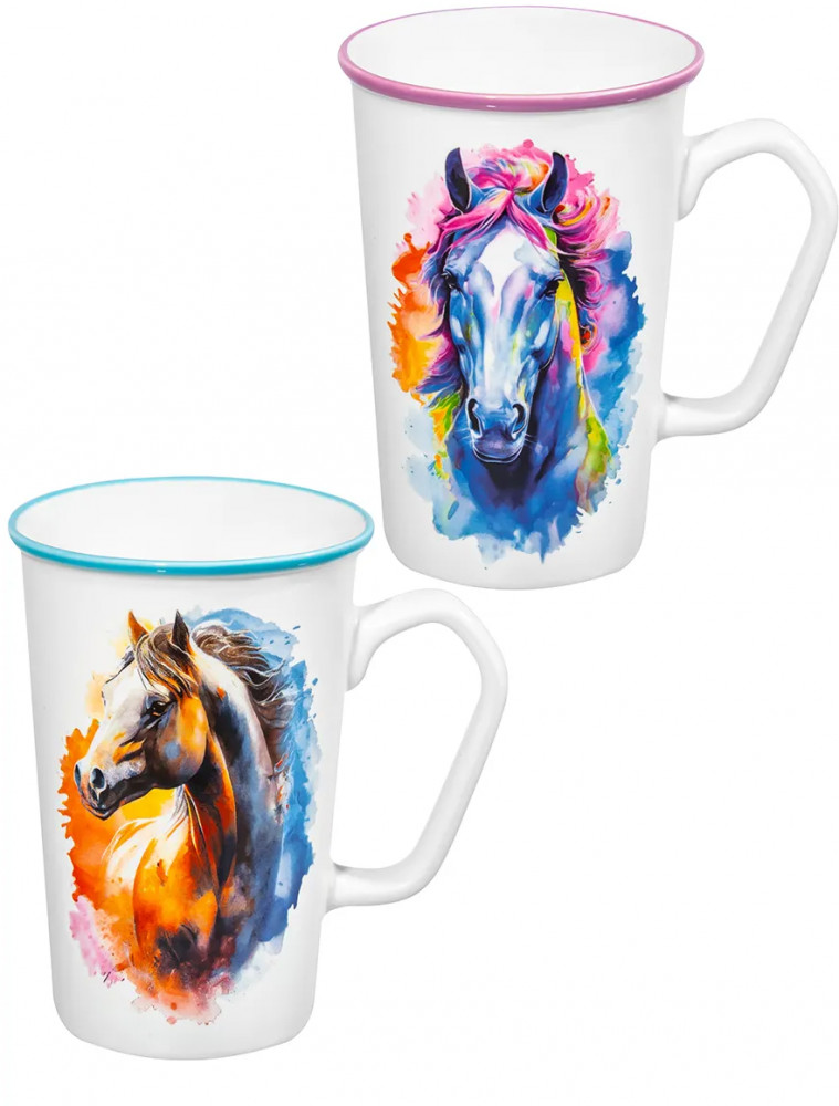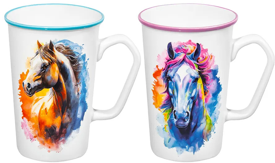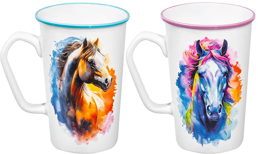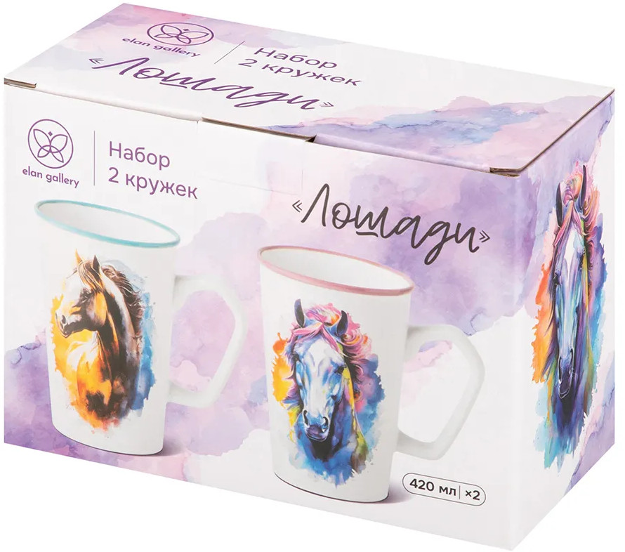 Набор 2 кружек от бренда Elan Gallery «Лошади» выполнен из фарфора. Размер каждого изделия 12,5×8,8×13 см, объём — 420 мл. Дизайн вдохновлён грацией и красотой самого благородного животного на планете — лошади. Красочные образы на изображении приглашают в захватывающее приключение по просторам зелёных полей и дремучих лесов. |