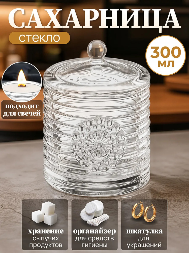 Декоративная баночка станет гармоничным дополнением при сервировке вашего стола как в будни, так и на праздник. Красивый дизайн позволит использовать её не только для хранения продуктов, но и для подачи на стол. Положите в неё конфеты или икру, чтобы удивить гостей изящной сервировкой. Стеклянную ёмкость с крышечкой можно использовать не только как медовый бочонок, икорницу или соусник, но и для специй и приправ. Это позволит держать под рукой всё необходимое во время приготовления и приёма пищи. На даче подойдёт для семейного чаепития в роли медовницы, а также для подачи ягод. В качестве альтернативы красивую вазочку с крышкой можно использовать как шкатулку или органайзер. Сложите в неё украшения, ватные диски или гигиенические палочки. Подходит в роли стакана для свечи.