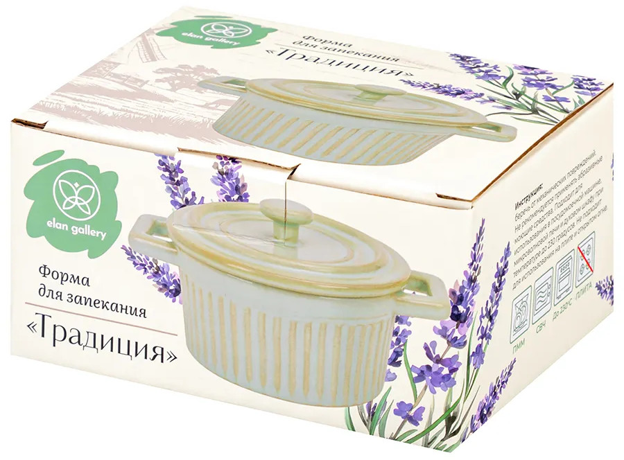 «Традиция» — это коллекция посуды для запекания, вдохновлённая уютом домашней кухни. Мягкие очертания, нежные оттенки и рельефные узоры навевают атмосферу безмятежности и пробуждают светлые воспоминания. Изделия созданы для любимых блюд по семейным рецептам, которые собирают близких за одним столом. Круглую жаропрочную формочку мятного цвета можно использовать для приготовления жюльена, порционных блюд из мяса и рыбы, картофельных и творожных запеканок. Порадуйте ваших близких выпечкой или кондитерскими изделиями: крем-брюле, кексами, пирожными или любыми десертами из творога. Приготовьте ароматное суфле или капкейк, украсив свежими ягодами!