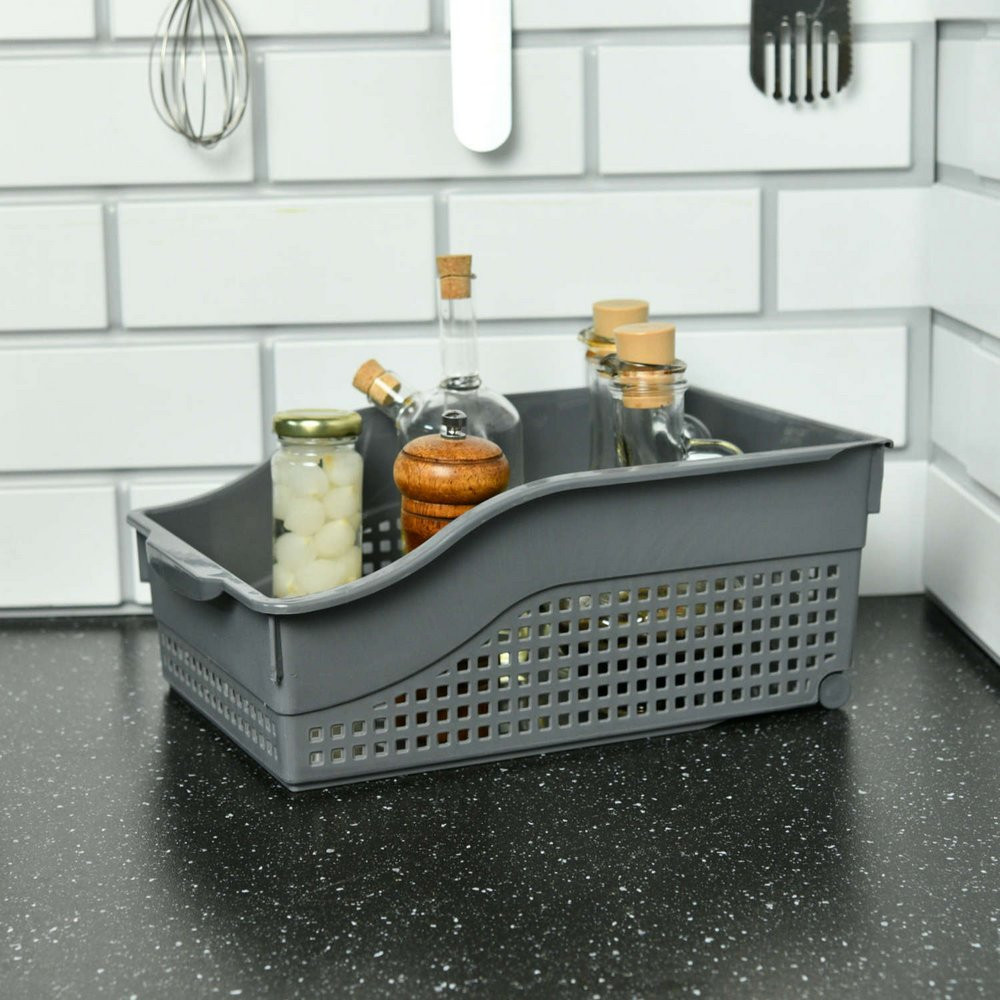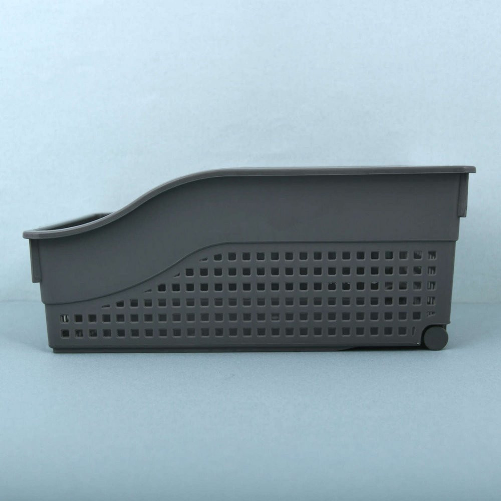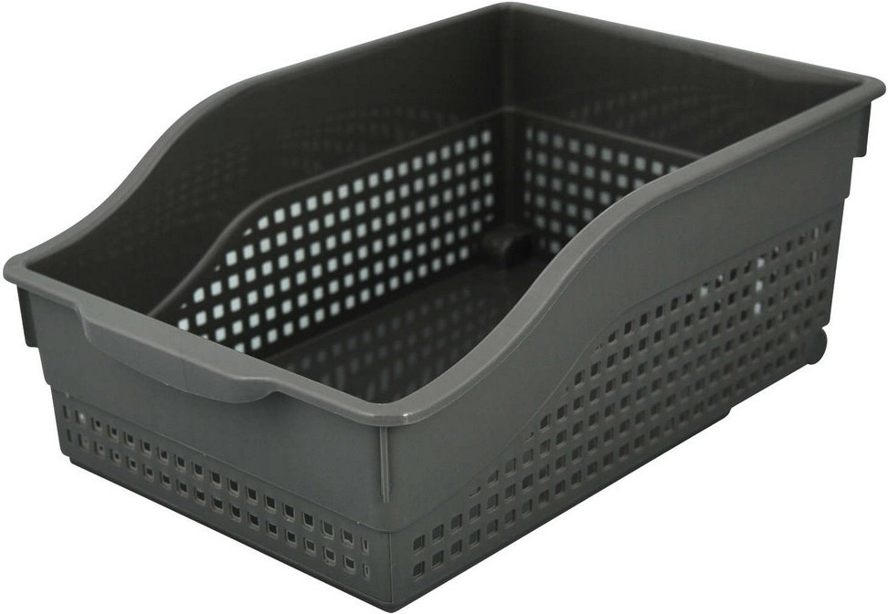 Очень удобный контейнер. Размер подходящий, удобно выкатывается на колесиках, есть ручка за которую удобно держать и выкатывать. Брала для хозяйственных инструментов, но очень хорошо вписался на полочки в холодильнике. Брала еще и узкий контейнер, они вместе удачно дополняют друг друга. Поэтому для хозяйственных вещей закажу еще.