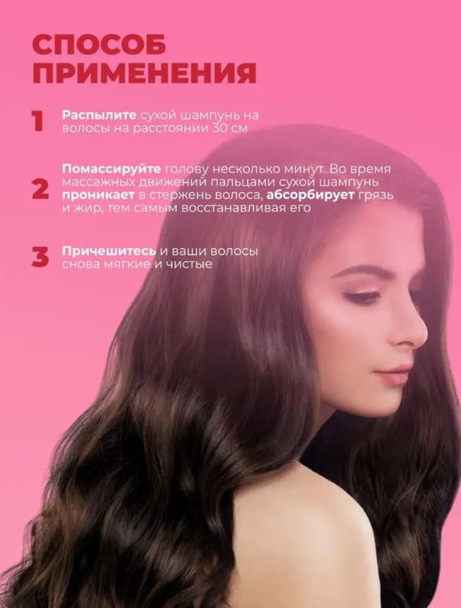 Хороший сухой шампунь. Брызгаю на чистые волосы, чтобы дольше сохранить их свежесть, так как у меня волосы склонные к жирности