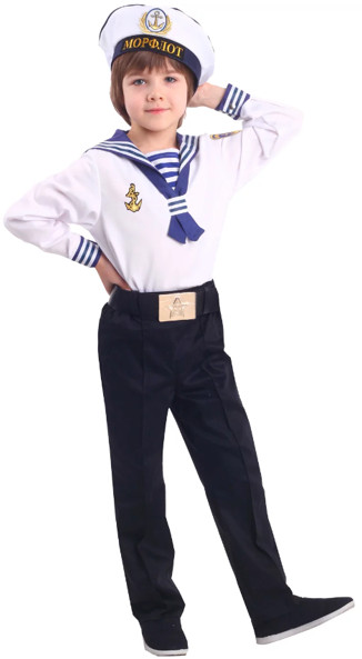 В комплекте: рубашка, брюки, ремень, бескозырка.