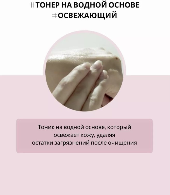 Способ применения: нанесите необходимое количество тоника на очищенную кожу при помощи ватного диска или ладошками. Продолжите уход.