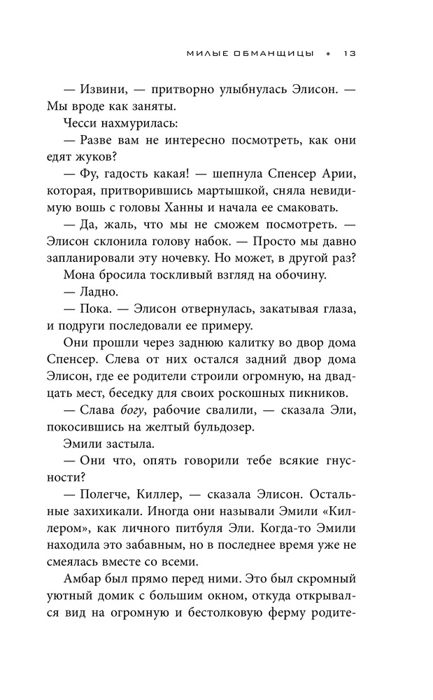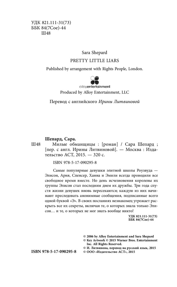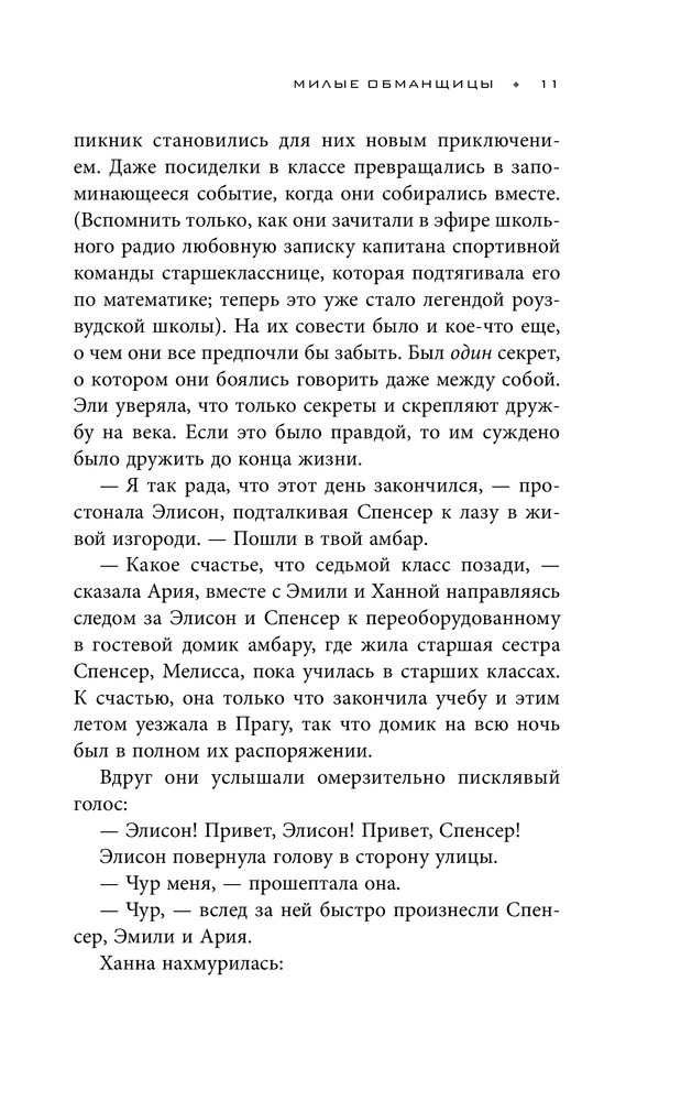 Милые обманщицыВ данный момент этот товар отсутствует в продаже. Возможно, у нас найдется аналогичный или похожий товар здесь. Серия: Милые обманщицы Самые популярные девушки элитной школы Роузвуда – Элисон, Ария, Спенсер, Ханна и Эмили всегда проводили все свободное время вместе. Но день исчезновения королевы их группы Элисон стал последним днем их дружбы. Три года спустя жизни девушек вновь пересекаются; каждую из них начинают преследовать анонимные сообщения, подписанные всего одной буквой «Э». В своих посланиях незнакомец угрожает раскрыть все их секреты, включая те, о которых знала только Элисон и те, о которых не мог знать вообще никто! |
