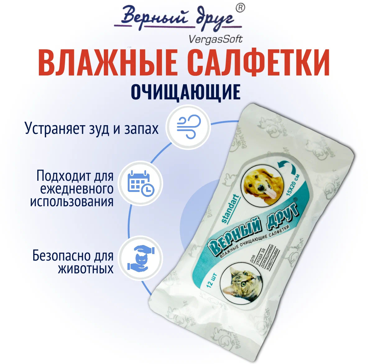 Верный друг Салфетки влажные для ухода за домашними животными