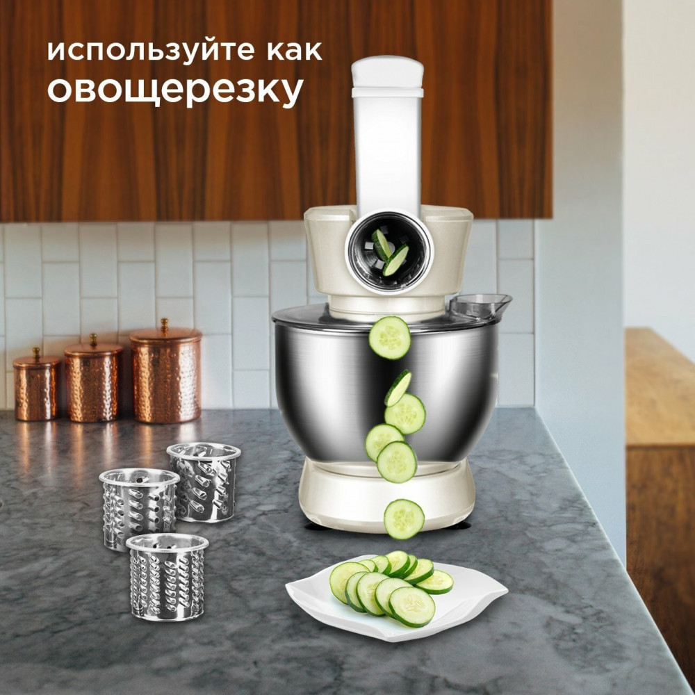 💳 Оплатить за товар можно при получении 🇰🇿 Есть бесплатная доставка по Казахстану 🎁 Копите бонусы с каждой покупки Кухонная машина Redmond RKM-4040 с комплектом насадок для различных кулинарных целей облегчит приготовление сложных блюд. Она поможет взбить яичные белки в пышную пену, вымесить вязкое тесто и приготовить суп-пюре. Благодаря 2 дискам для фарша и насадкам для колбасок заменит мясорубку, а 4 насадки для терки и шинковки позволят использовать прибор как овощерезку. Скорость работы легко регулировать — доступно 6 режимов. |