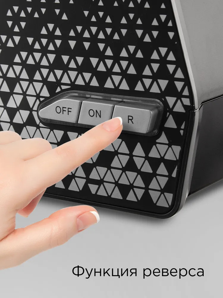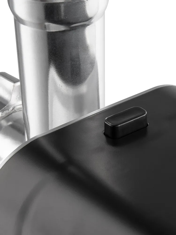 Вам больше не придется разбирать мясорубку и самостоятельно очищать ее от застрявших жилок или скопившегося мяса. Для быстрой очистки шнека прибор оснащен функцией реверса. Используйте ее, если переработка продуктов замедлилась или вовсе прекратилась. Шнек провернется в обратную сторону и переместит излишки мяса обратно к загрузочному отверстию.