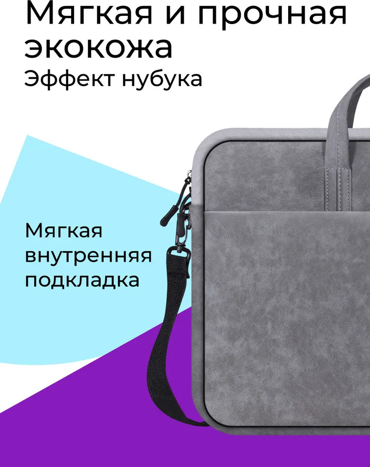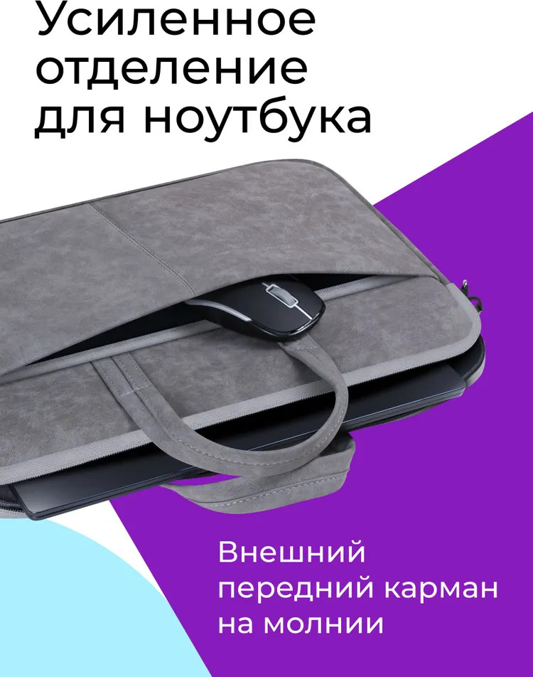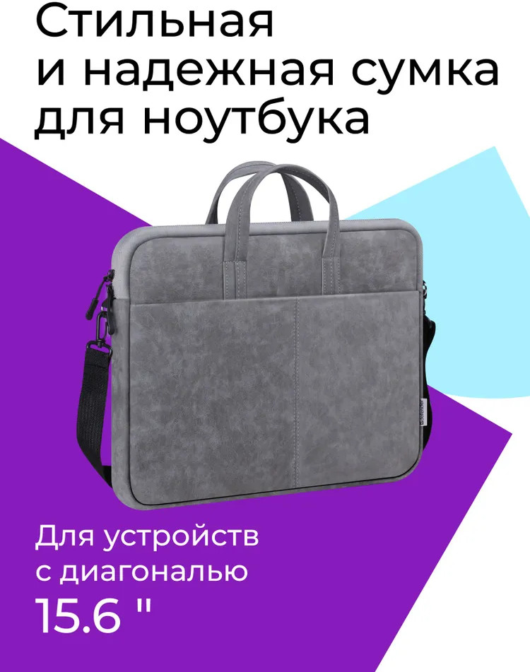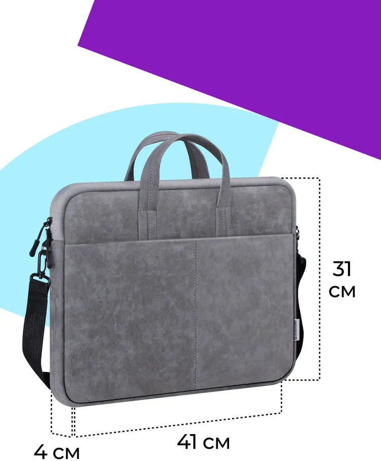 Стильная и надежная сумка для ноутбуков с диагональю до 15.6″, изготовлена из высококачественной экокожи (искусственный нубук), внутри мягкая подкладка. Внешний дополнительный карман на молнии поможет удобно разместить все необходимые периферийные аксессуары. Современная и элегантная сумка для ноутбука из прочной водонепроницаемой ткани сочетает стиль с практичностью и функциональностью.