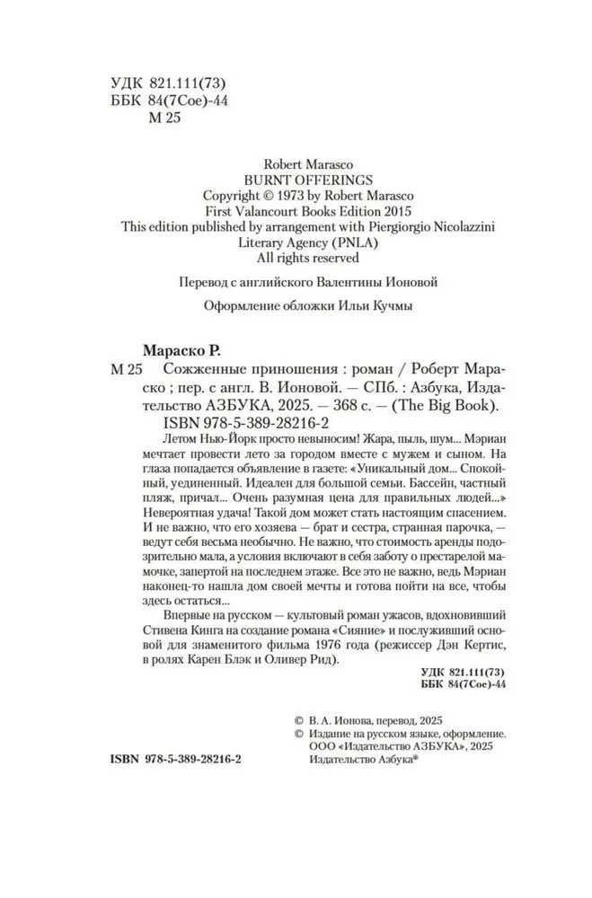 💳 Оплатить за товар можно при получении 🇰🇿 Есть бесплатная доставка по Казахстану 🎁 Копите бонусы с каждой покупки Серия: The Big Book Летом Нью-Йорк просто невыносим! Жара, пыль, шум... Мэриан мечтает провести лето за городом вместе с мужем и сыном. На глаза попадается объявление в газете: «Уникальный дом... Спокойный, уединенный. Идеален для большой семьи. Бассейн, частный пляж, причал... Очень разумная цена для правильных людей...» Невероятная удача! Такой дом может стать настоящим спасением. И не важно, что его хозяева — брат и сестра, странная парочка, — ведут себя весьма необычно. Не важно, что стоимость аренды подозрительно мала, а условия включают в себя заботу о престарелой мамочке, запертой на последнем этаже. Всё это не важно, ведь Мэриан наконец-то нашла дом своей мечты и готова пойти на всё, чтобы здесь остаться... |
