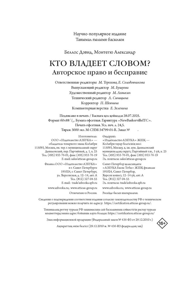 💳 Оплатить за товар можно при получении 🇰🇿 Есть бесплатная доставка по Казахстану от 1 дня 🎁 Копите бонусы с каждой покупки Серия: Человек Мыслящий. Идеи, способные изменить мир Копирайт окружает нас повсюду: книги, фильмы, музыка и даже приложения на вашем смартфоне — всё это защищено авторским правом. Но так было далеко не всегда: идея, что авторы сами вольны решать, кто будет распространять их произведения, появилась лишь в XVIII веке, когда английские печатники потребовали защитить их право на издание текстов. Легальны ли фанфики и Википедия? Как авторское право проникло во все сферы нашей жизни? И почему зачастую оно не защищает творцов, а причиняет им вред? В этой книге вы встретите Цицерона, Шекспира, Виктора Гюго, Энди Уорхола, Тейлор Свифт и узнаете, кто на самом деле владеет словом. |