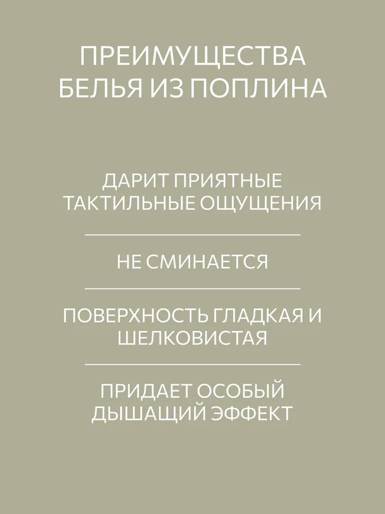 Роскошное постельное белье из натурального поплина — ваш путь к идеальному сну. Натуральное качество постельного белья из поплина покорит вас с первого прикосновения. Этот благородный материал, известный с XIV века, создан специально для тех, кто ценит комфорт и долговечность.