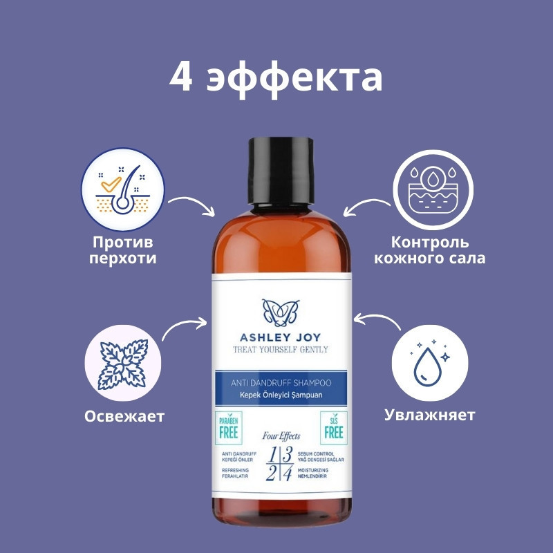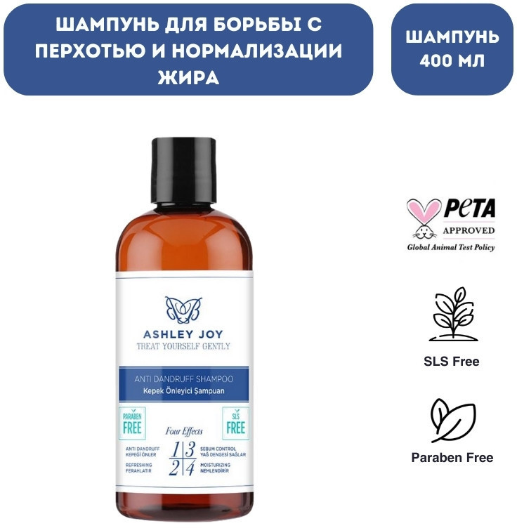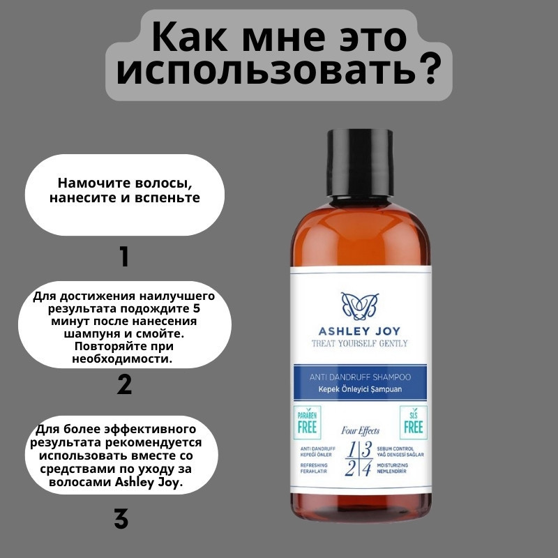 Ashley Joy Шампунь для волос бессульфатный против перхоти с активированным углем и бентонитовой глиной