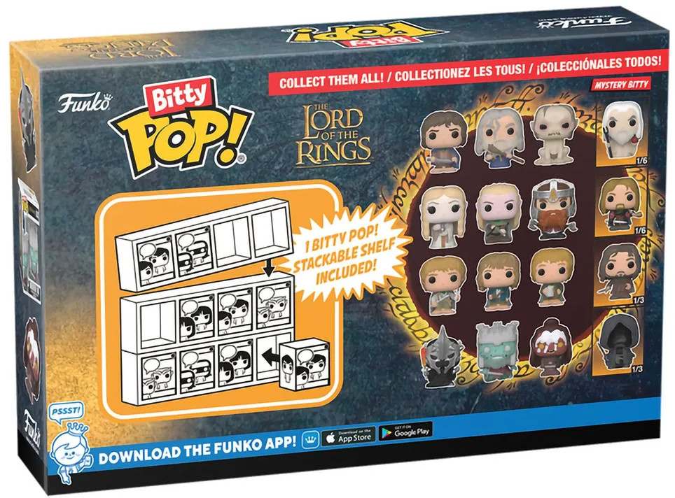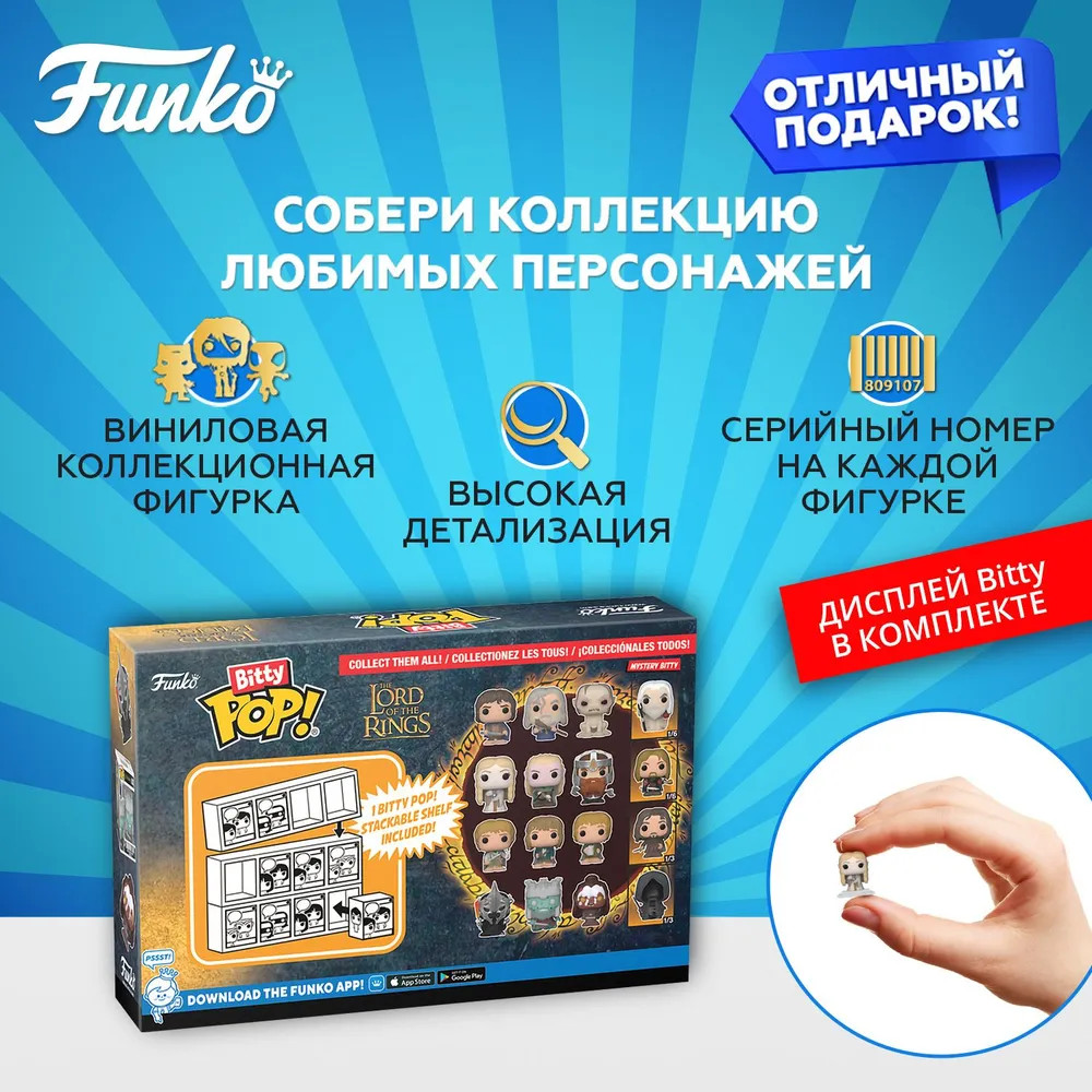 💳 Оплатить за товар можно при получении 🇰🇿 Есть бесплатная доставка по Казахстану от 1 дня 🎁 Копите бонусы с каждой покупки Серия: Bitty Pop! Фигурка Funko Bitty POP! LOTR Witch King+Dunharrow King+Lurts+Mystery (1 of 4) 4PK 75459 по мотивам фильма «Властелин колец». Bitty Pop! упакованы в твердые акриловые футляры со съемными нижними крышками. Съемные нижние крышки служат одновременно акриловой основой, к которой приклеены фигурки. Сортируйте и раскладывайте свои Bitty Pop! с помощью прилагаемой витрины. Акриловые витрины можно складывать в штабель и вмещать по четыре фигурки Bitty Pop! в каждый ряд. Высота фигурки — около 2 см. Оригинальный и официально лицензированный продукт. |