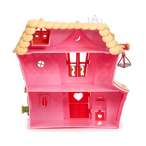 С одной стороны домика – закрытый фасад, с другой – открытые помещения с комнатками. Домик трехэтажный, внизу находится кухня, на втором этаже – ванна и спальни, а на чердаке живут любимые питомцы подружек Лалалупси. В домике открываются окна и двери, есть даже специальный лифт для животных!