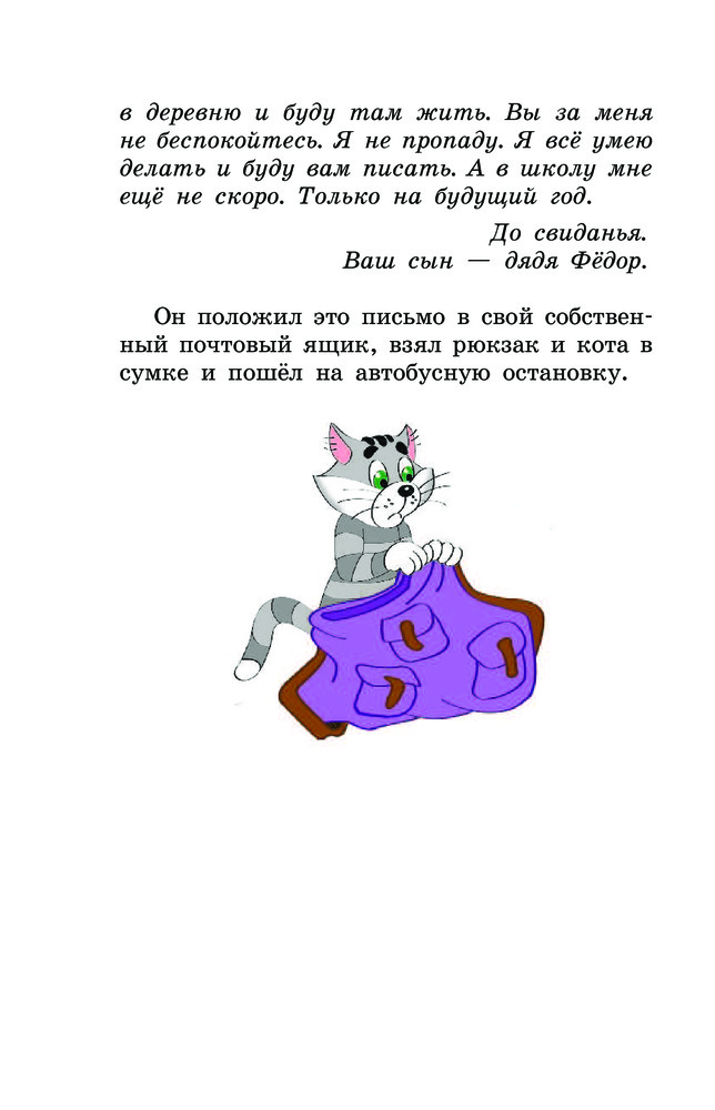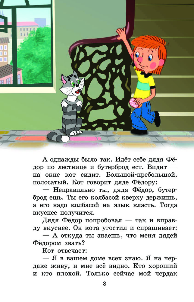 Сама книга очень интересная. Смешно написано про тётю дяди Фёдора. Единственный минус на мой взгляд - это иллюстрации разных художников. Почтальон Печкин на протяжении книги выглядит всё хуже и хуже, сначала у него густые волосы, потом он худой и лысый.